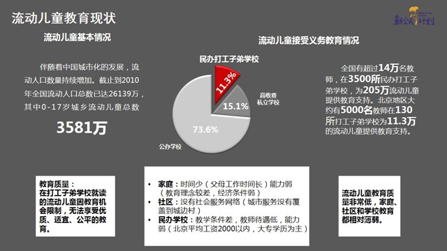 在中国有3581万流动儿童,其中205万流动儿童为了“有学上”,只能在民办打工子弟学校就读。像所有孩子一样,流动儿童对这个世界也有着极大的好奇心与探索能力,阅读嘉年华项目希望通过趣味性高、体验性强的多元阅读活动,帮助流动儿童爱上阅读,学会学习,自主学习。